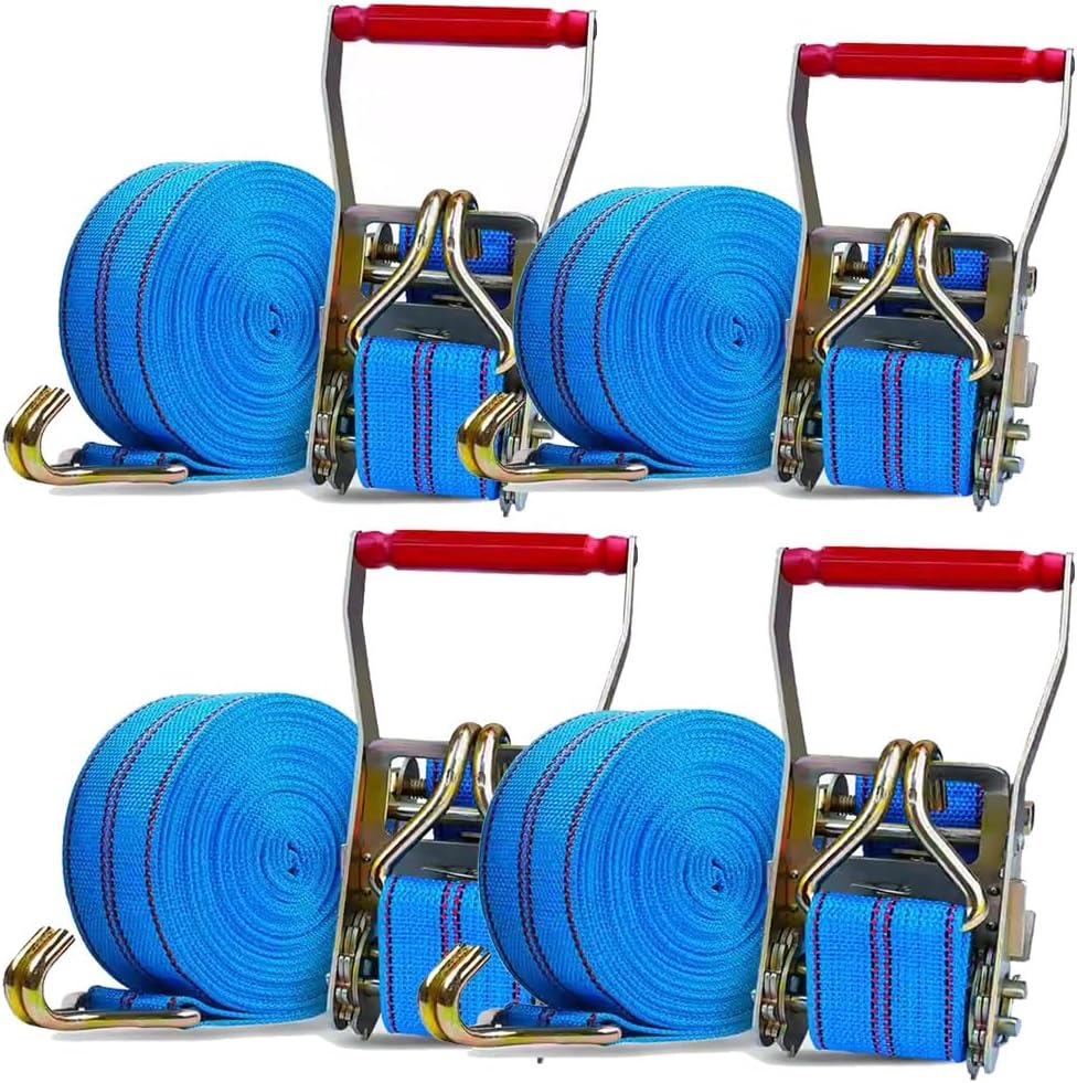 Are you still worried about cargo falling off easily?Heavy duty ratchet straps with double J hooks, tie down straps can be widely used to secure cargo for moving and securing equipment, motorcycles, trucks, vans, kayaks, warehouses, etc.Specifications: Name: Polyester Tie Down StrapsColor: BlueMaterial: Polyester Straps + Steel Frame + Aluminum HandleWidth: 6 cm / 2.4 inLength: (1-20) m / (3.3-65.6) FtApplication: Bundling goods /fixing goods, etc.Features:1. High-density cargo straps are wear-resistant and break-resistant2. Cargo straps are easy to use, not easy to fall off and can be fixed immediately3. Truck straps have an easy-release mechanism to easily release the tension on the straps4. Ratchet straps have double-stitched edges to prevent slipping during use; ensure that the cargo is firmly fixed in place, giving you peace of mind when transporting cargo; reinforced stitching adds extra strength and stability to the straps5. Lashing strap are equipped with double J-hooks for easy fixation6. Tow strap have strong pulling force, 5tons/11023lbs7. Tie down straps are widely used, including moving, securing cargo, camping or other tie-down needs, such as warehouses, motorcycles, canoes, kayaks, ATVs, trucks, boxes, furniture, lawn equipment, etcPackage Included:1 x Heavy Duty Ratchet Strap with HooksTighten Ratchet Straps Steps:1. Pass the strap under the tensioner rotating shaft2. Pass the strap through the center slot of the tensioner rotating shaft3. Pull the tensioner handle back and forthRelease Ratchet Straps Steps:1. Fasten the safety plate outwards2. Open the tensioner to level3. Pull out the strapNotes:1. Due to manual measurement, there may be a 1-2 cm error, please understand2. Due to different monitors, there may be color differences, please refer to the actual product3. Do not use as a vehicle tow rope, car towing needs to be more load-bearing rope