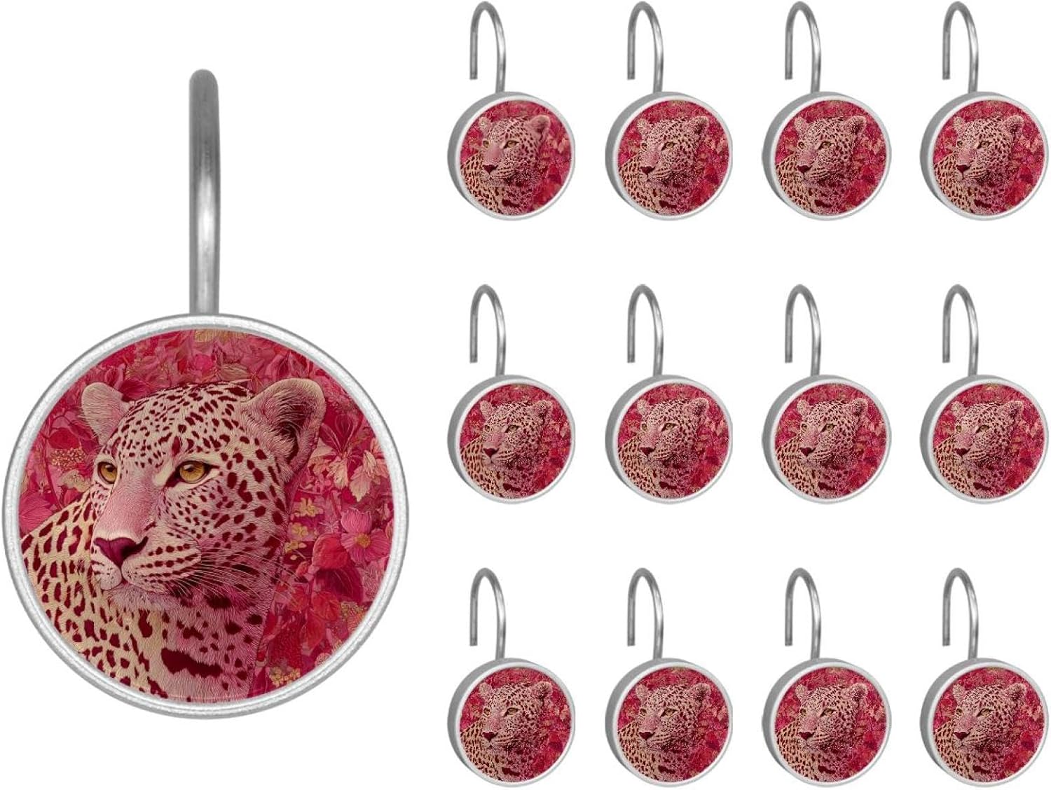 MATERIAL: glass, stainless steel. These shower curtain hooks can be decoration bathroom and will be long-lasting.12 pieces of shower curtain hooks, round crystal glass decoration, printed patterns, silver hooks to match various styles of bathroom shower curtains. SIZE: Crystal glass diameter of round shower curtain hook is 1.45x1.45in/ 3.7x3.7cm. The shower curtain hooks diameter is about 1.1in, 12 pieces shower curtain hooks are suitable for rod of 8-28mm(0.3"-1.1"). RUST RESISTANT:Shower hooks are made of stainless steel and crystal glass, which is durable, rust-proof and corrosion-resistant, it will not rust suitable for wet bathroom environment. EASY TO INSTALL:Hand the shower curtain hooks hold securely on straight or curved shower curtain rods,slid easily and smoothly. Easy to install and decorate your bathroom. BEAUTIFUL AND ELEGANT:Beautiful Love hook add charming scenery for your bathroom, baby room, bedroom, living room, and the gorgeous style is easy to match with any kinds of bathroom shower curtain. EASY GLIDE: Open and close your shower curtain quickly and easily with the Shower Hooks, easily glides on shower curtain rods and tension rods. No snagging; no effort; no hassle PACKAGE: 12 shower curtain hooks in a pack.The bathroom curtain hook has a smooth appearance and can be hung on the pole to pull it at will. Special price 12 sets to meet your needs.