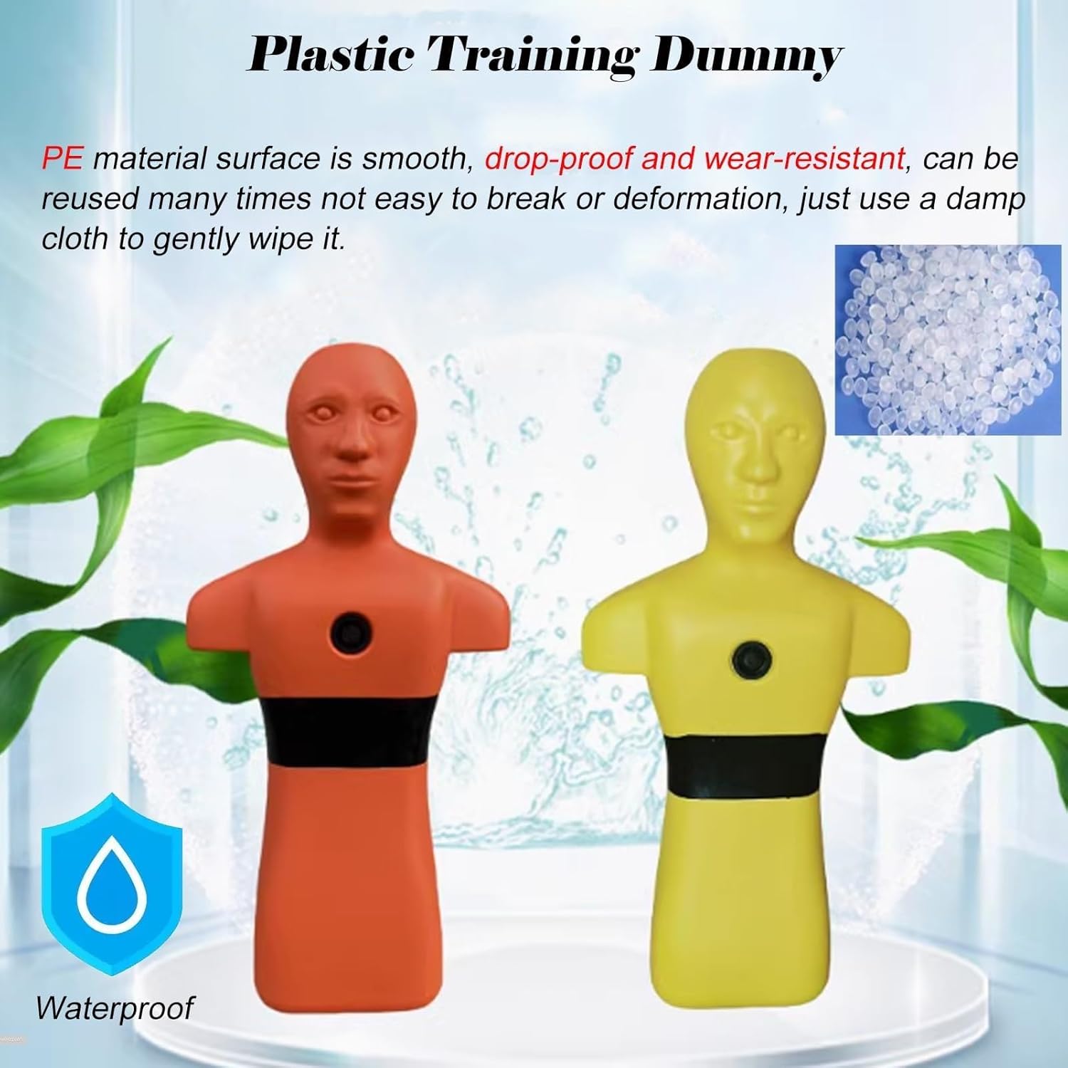 Specifications: - **Product Name**: Water Life-saving Training Dummy - **Material**: Durable PE - **Color Options**: Bright Orange, Yellow - **Dimensions**: 39.4 x 20.9 x 8.7 inches - **Weight**: 19.8 lbs (Filled Weight: 110.2 lbs) - **Ideal For**: Swimming pool lifeguard training, professional lifeguard simulation, water safety education. Key Features: 1. **Durable PE Material**: Designed for repeated use without damage or deformation. 2. **Versatile Use**: Suitable for various environments, including wet training areas that require sanitization. 3. **Realistic Simulation**: Floats on the water surface, mimicking a drowning victim to enhance rescue skill training. 4. **Customizable Weight**: Water can be added for a tailored training experience, improving lifesaving techniques. 5. **Weighted Design**: Provides a realistic resistance during training, preparing lifeguards for actual rescue challenges. 6. **Comprehensive Training**: Ideal for both swimming practice and sea lifesaving scenarios. 7. **Educational Tool**: Facilitates drowning prevention education and simulates rescue situations to boost safety awareness. Package Includes: - 1 x Water Life-saving Training Dummy Please Note: - Manual measurements may vary by 1-3 cm. - Color discrepancies may occur due to lighting and individual perception; refer to the actual product for true color.