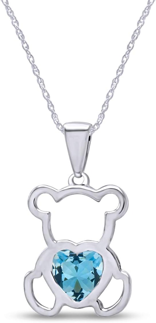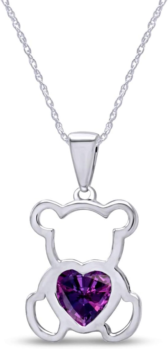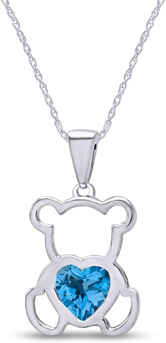 Introducing our exquisite Teddy Bear Pendant Necklace, crafted with utmost precision and elegance. This remarkable piece is meticulously designed in 14K Gold Over 925 Sterling Silver, ensuring both durability and timeless beauty.The centerpiece of this necklace is a heart-shaped pendant, adorned with a heart cut simulated birthstone. The simulated birthstone, carefully chosen to resemble the brilliance and allure of genuine gemstones, adds a touch of sophistication and personalization to this already captivating piece.The pendant features an intricately crafted teddy bear, symbolizing love, warmth, and affection. The attention to detail in the teddy bear's design is truly remarkable, showcasing the craftsmanship and artistry that went into creating this pendant.The necklace itself is crafted from 925 Sterling Silver, renowned for its exceptional quality and lustrous shine. The 14K Gold overlay adds a luxurious touch, elevating the overall aesthetic of the piece. The chain is delicately designed to complement the pendant, ensuring a seamless and elegant look when worn.This Teddy Bear Love Heart Pendant Necklace is not only a stunning accessory but also a meaningful gift. It serves as a beautiful reminder of love, making it an ideal present for birthdays, anniversaries, or any special occasion.Indulge yourself or a loved one with this exquisite necklace, a true testament to refined taste and timeless elegance. Experience the joy of owning a piece that effortlessly combines style, sentiment, and superior craftsmanship.Jewelry Care TipsStore In An Air-Tight Jewelry BoxKeep Away From MoistureRemove When You Go To SleepAllow Perfumes Or Lotion Before WearingRemove When ActiveRemove Before Entering In WaterYour Item Was Made With Love So Please Show It Some Love By Taking Good Care Of It.