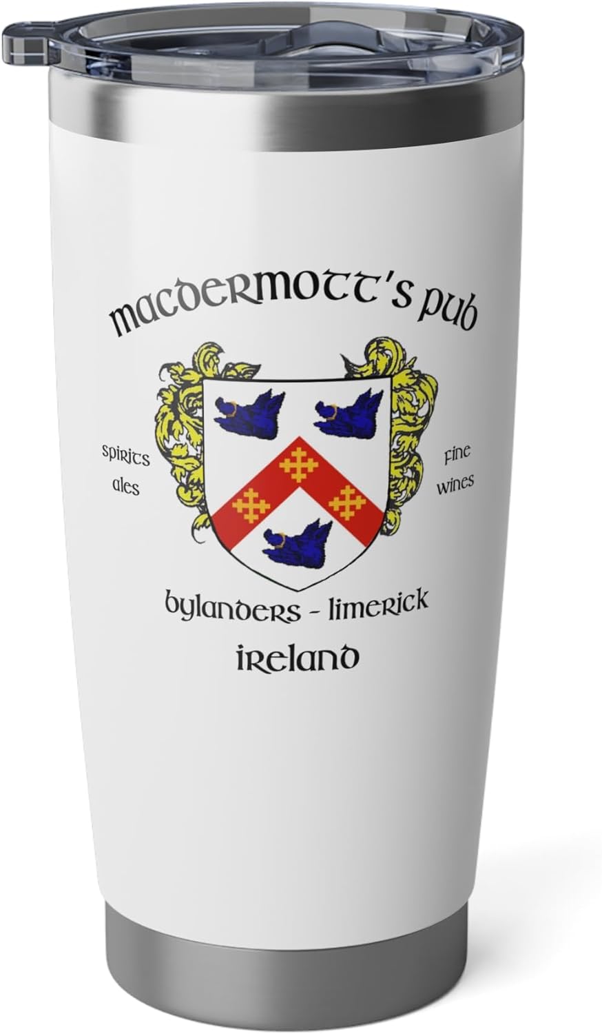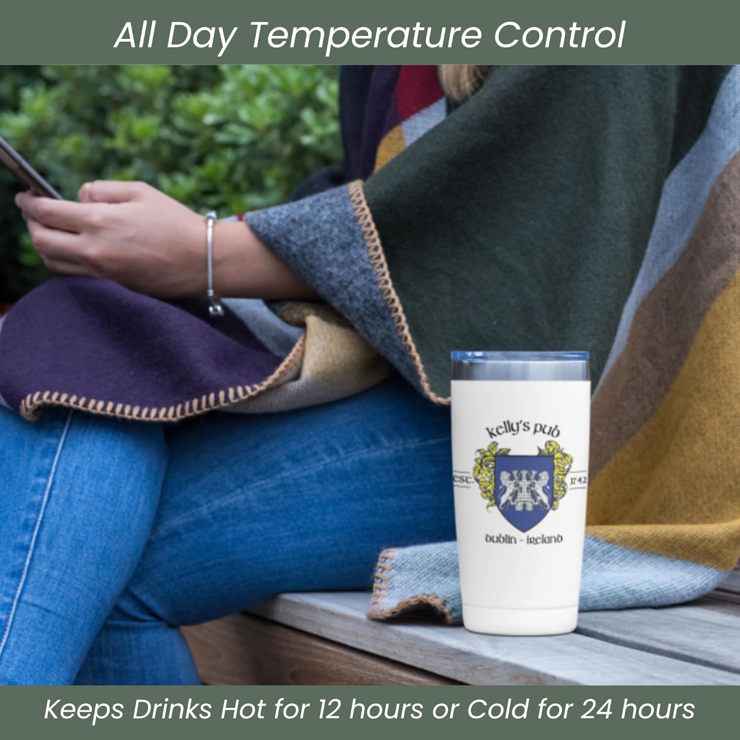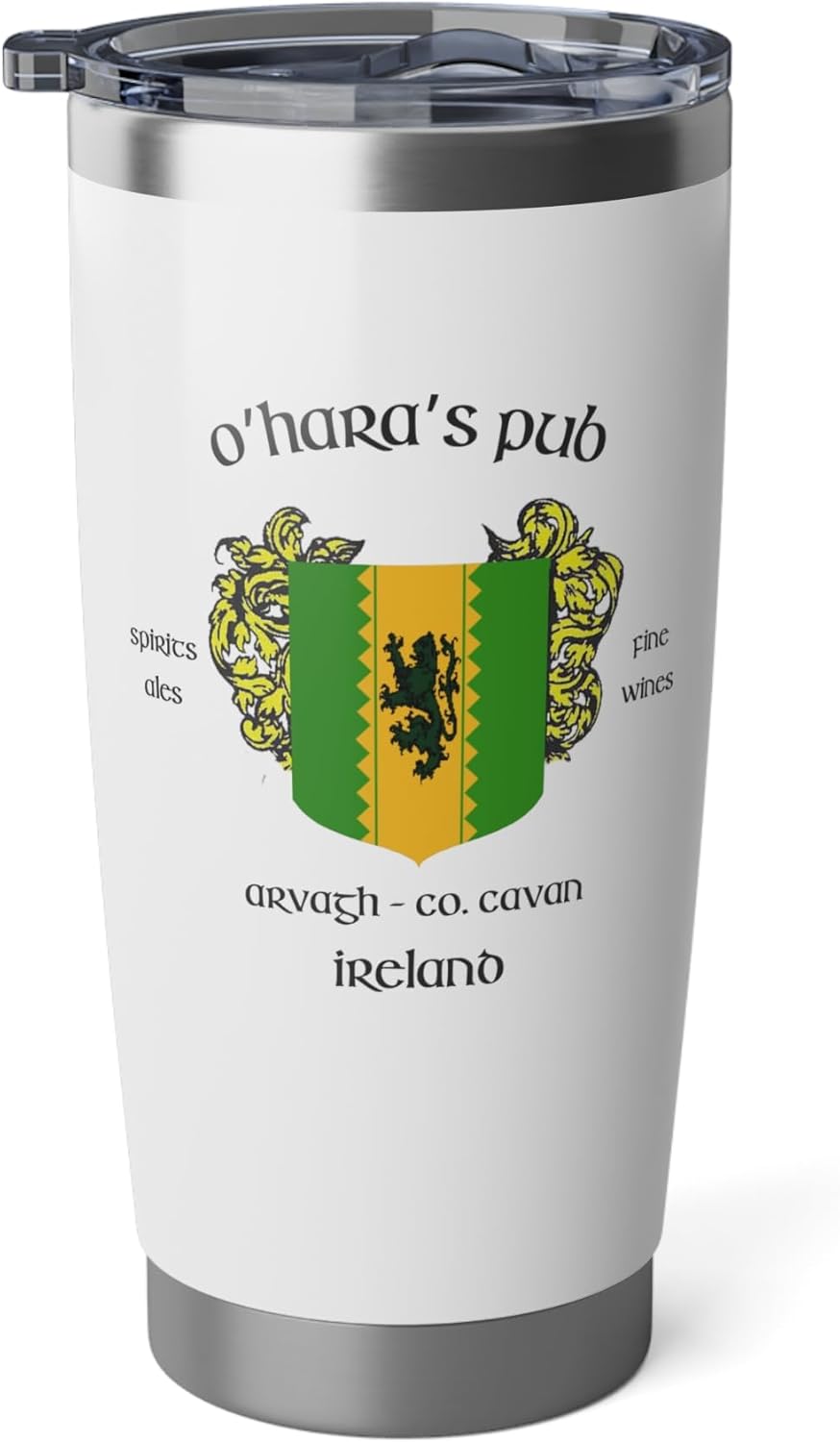 Experience the true essence of Ireland with our authentic 20 oz insulated tumblers with lids, inspired by over 200 Irish pubs and Irish bars and featuring family crest and coat of arms designs. These tumblers capture the unique spirit of Ireland’s most cherished gathering places, offering a piece of authentic Irish pub culture that you can take with you wherever you go. Each tumbler represents one of Ireland's iconic Irish pubs, featuring designs, logos, and artwork that tell the story of the pub it comes from. Many designs even feature the Irish family crest or Irish coat of arms, celebrating Ireland's rich heritage. Whether it's a historic Irish pub in a quaint village or a lively Irish bar in the heart of Dublin, these tumblers bring a touch of Irish pub tradition into your daily routine. With over 200 unique designs, no two tumblers are alike, making this collection a must-have for any lover of Irish pubs and culture. Crafted for durability and convenience, these 20 oz tumblers are designed to keep your beverages at the perfect temperature—whether hot or cold. The double-wall insulation ensures your drink stays just the way you like it, while the included lid helps prevent spills, making it perfect for on-the-go use. Whether you're enjoying your morning coffee, afternoon tea, or evening cocktail, these tumblers offer a stylish and practical way to savor your favorite drinks. These tumblers are not only functional but also a unique way to connect with the warmth and camaraderie of Irish pubs and Irish bars. Perfect for collectors, Irish pub enthusiasts, or anyone seeking a distinctive, practical item, they make an excellent gift for any occasion. With our Irish pub insulated tumblers, you're not just getting a drink container—you're holding a piece of Ireland's rich pub heritage. Take the charm of an Irish pub or Irish bar with you wherever you go, and enjoy your drinks with a touch of Irish authenticity.