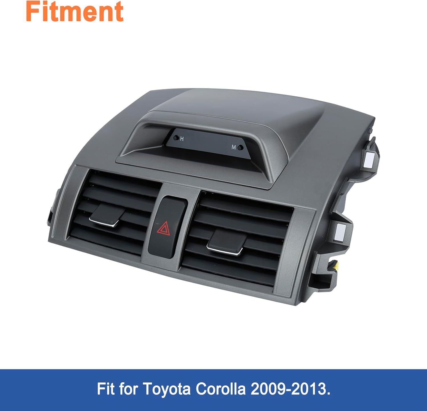 FITMENT: Fit for Toyota Corolla 2009-2013. Package List: 1 X Center Dash A/C Outlet Air Vent Panel with Clock Air Vent. 1 X Emergency switch. Notice: Please verify your part pictures, part numbers before purchasing to prevent wrong purchases.
