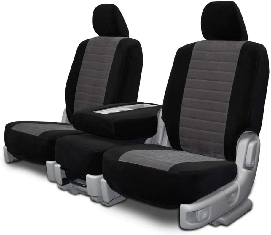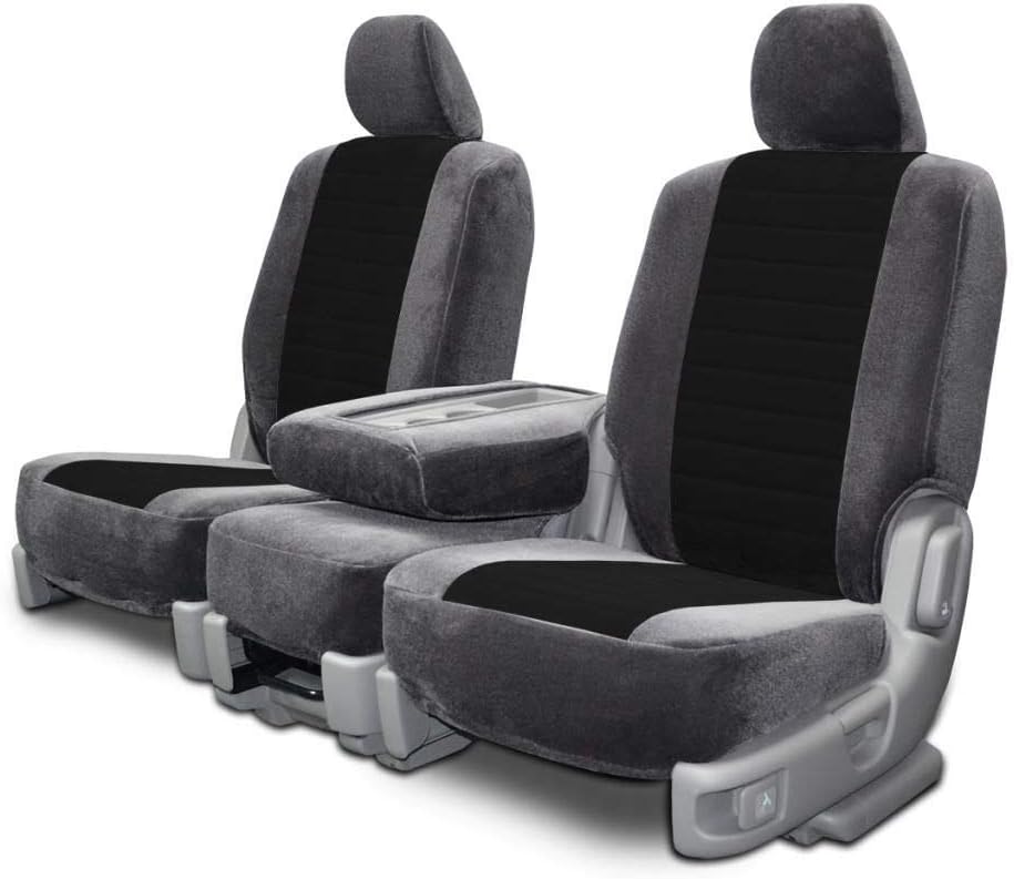 Two-Tone velour custom seat covers are designed to project a super sleek look while being extremely soft and durable. This upholstery style fabric is pre-treated with a water and stain repellant application to provide you with worry-free protection so you can know that wherever life takes you, your truck or car seats are protected. This velour fabric is a high-grade material that is soft, smooth, and extremely long-lasting. To further enhance these awesome truck/car accessories, the center insert has been quilted with a foam backing to provide comfort, protection, and body. These seat covers are custom-made from OEM seat measurements and are meant to fit seamlessly over existing upholstery.