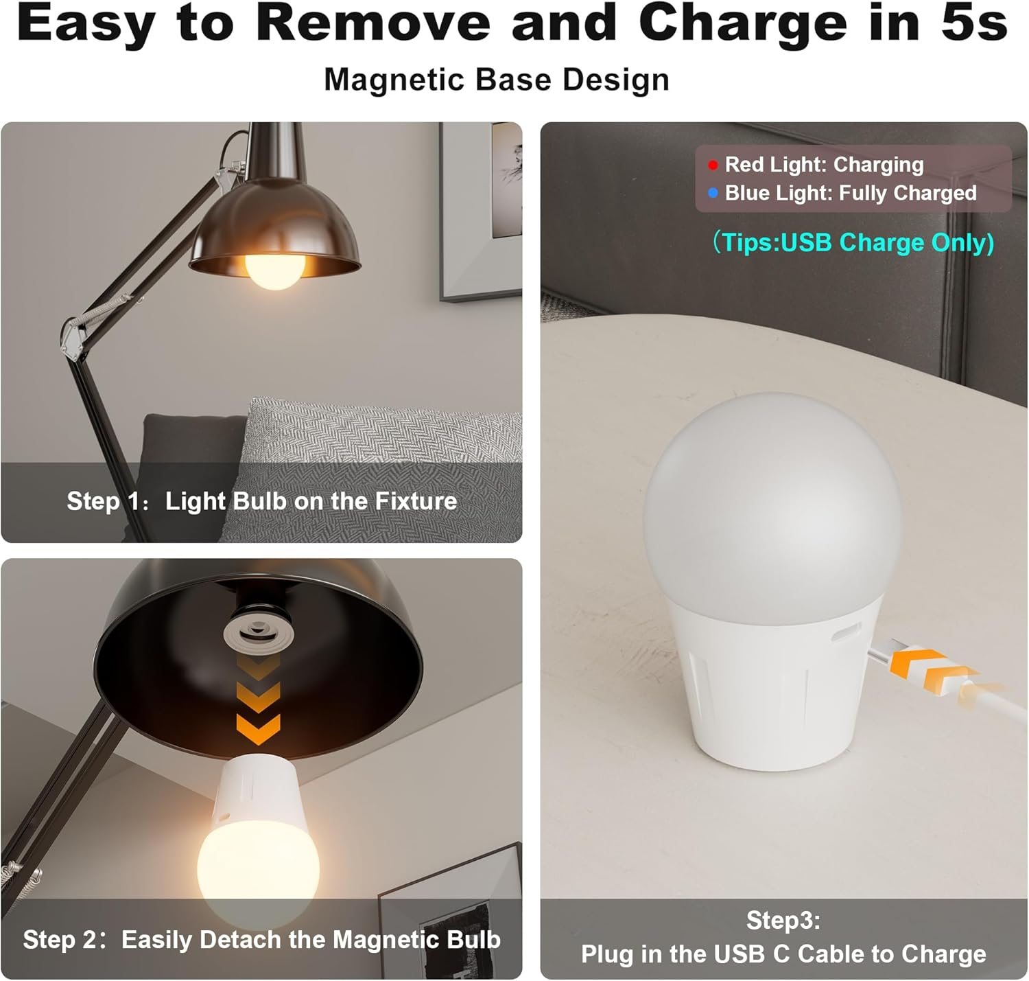 | Additional Features | Color Changing, Dimmable, Rechargeable, Timer |