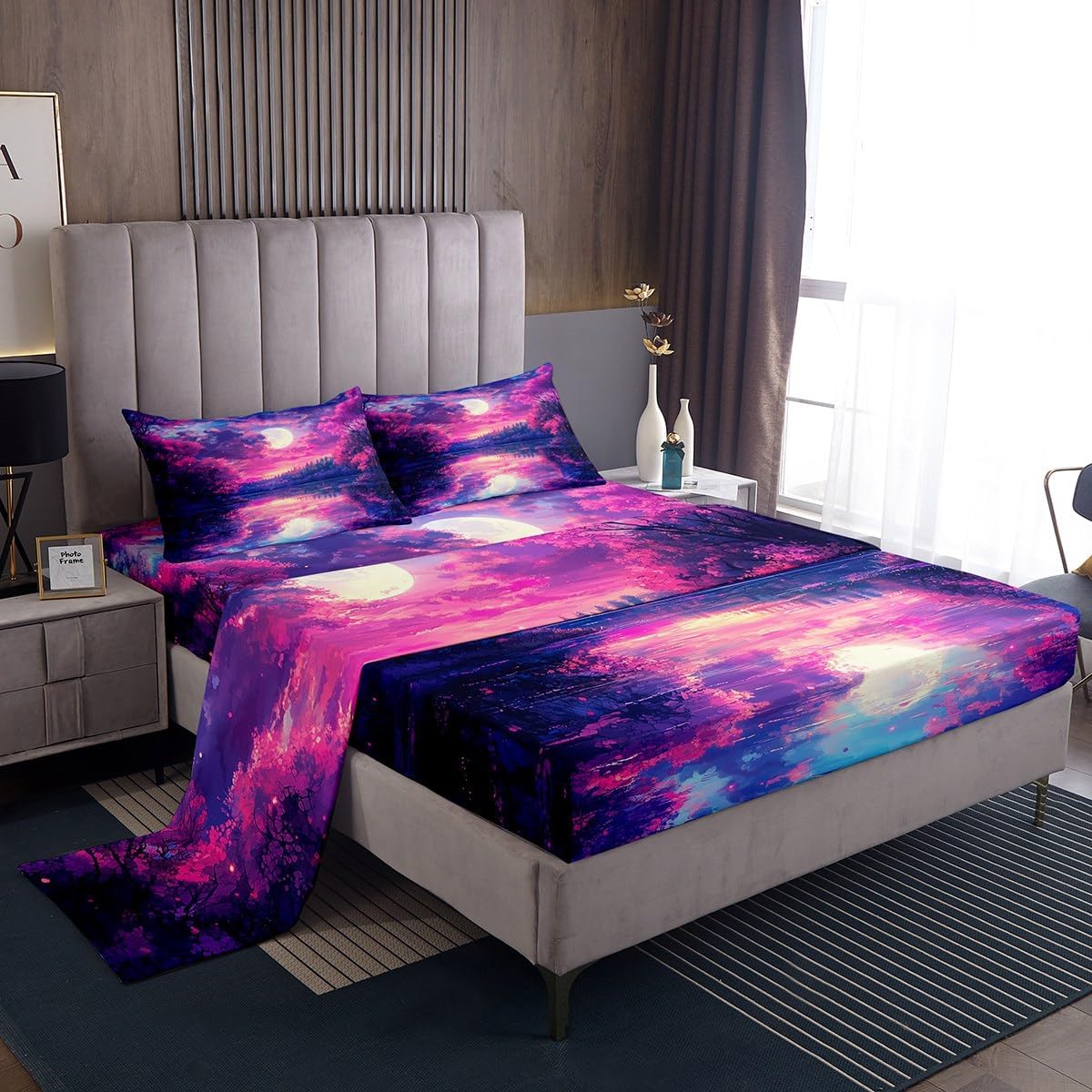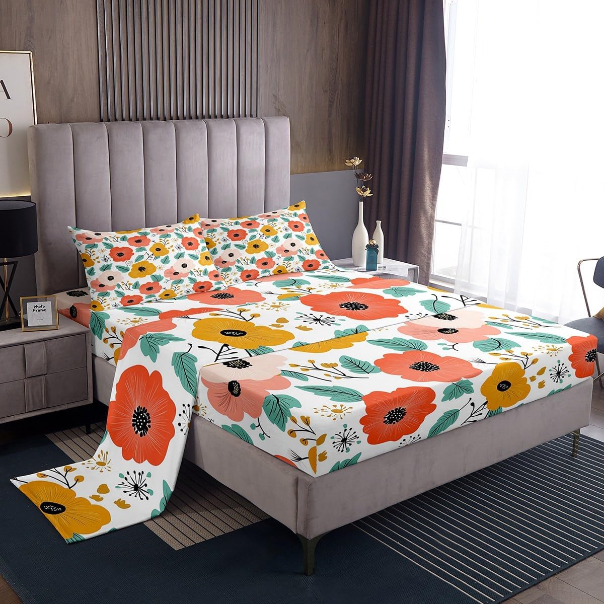 Welcome to our store. We have specialized in home textile for many years.We are committed to providing customers with comfortable products. Size Imformation Twin size: 1 Fitted Sheet (39"x75"x16"), 1 Flat Sheet (96"x66"), 1 Pillowcase (20"x30"). Full size: 1 Fitted Sheet (54"x75"x16"), 1 Flat Sheet (96"x81"), 2 Pillowcases (20"x30"). Queen size: 1 Fitted Sheet (60"x80"x16"), 1 Flat Sheet (102"x90"), 2 Pillowcases (20"x30"). King size: 1 Fitted Sheet (78"x80"x16"), 1 Flat Sheet (106"x90"), 2 Pillowcases (20"x49"). Versatility We have many kinds of styles for you to choose.You can easily find a product that suits the style of your room. The item is not only fits your home (bedroom, guest room, living room, etc) or RV, but also a present for holidays or anniversaries (Chiristmas, New Year, Halloween, Thanksgiving day, birthday) for people who you love (your families, friends, relatives, boyfriend,girlfriend). Modern Design The luxury aesthetic bedding sheets are made by reactive printing and dyeing process. The pattern is clear, the color is lasting and bright, which will not fade after repeated washing. No harmful chemicals or dye substance. Personalized As a manufacturer of digital printed home textiles, we follow current trends and bring you the latest and stylish home textile products. The item will make the room decorated in exquisite taste.
