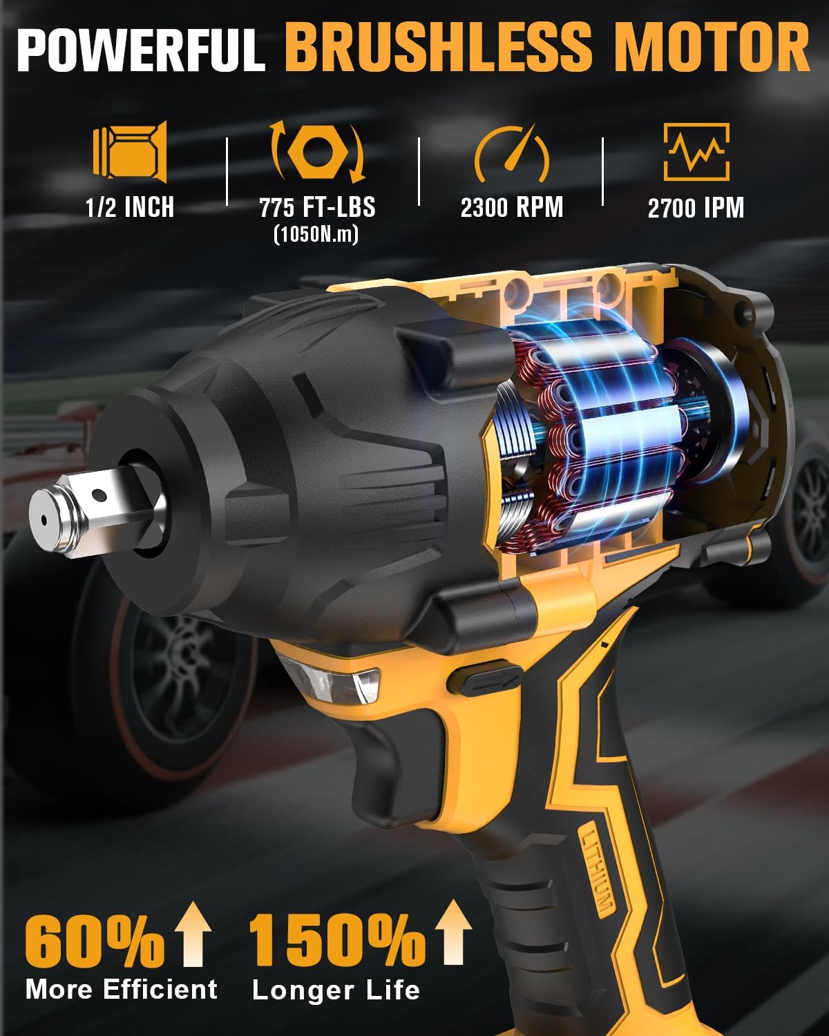EWORK 21V 1/2" Cordless Impact Wrench 775 Ft-lbs, Brushless Compact High Torque Impact Gun High Torque, 3-Speed Modes with 5 Sockets (Tool Only)