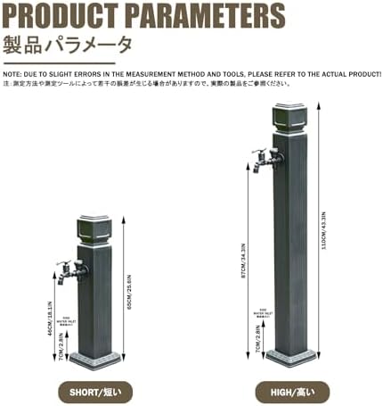 Introducing our premium outdoor faucet, designed for durability and functionality in various outdoor settings. Crafted from high-quality brass, this faucet features a robust aluminum alloy shell that withstands the harshest weather conditions while resisting wear and impact. Its built-in stainless steel water pipe is insulated with an aluminum foil layer, providing protection against freezing temperatures, sun damage, and aging—ensuring long-lasting performance. Ideal for farms, gardens, patios, and other outdoor spaces, this outdoor vertical water column faucet is available in two convenient heights: 60 cm (23.6 inches) and 95 cm (37.4 inches). The thoughtful design includes a side hose rack to keep your hoses organized and tangle-free, allowing for effortless watering and maintenance of your outdoor areas. Versatile installation options make this faucet suitable for various setups, with both side entry and bottom entry methods available. Enhance your outdoor experience with an efficient and stylish faucet that meets diverse watering needs. Please note that all product images are taken under natural lighting, and slight variations may occur due to lighting conditions, angles, or computer resolutions. Expect minor discrepancies in measurements (1-3 cm) due to manual processing. We appreciate your understanding and are confident that this outdoor faucet will exceed your expectations. Upgrade your outdoor space today!