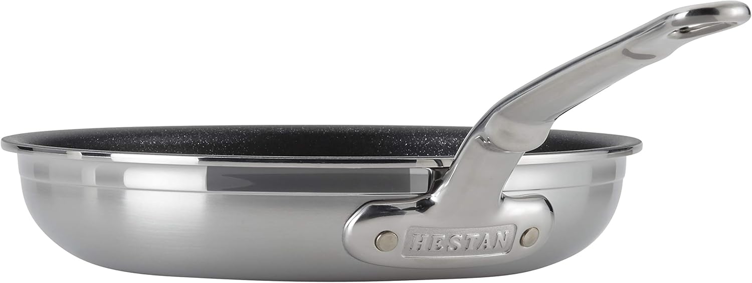 Hestan ProBond technology re-defines heat performance and durability with an innovative cold-forging stainless steel fabrication process. ProBond offers stainless steel cookware with a uniquely thicker base, and thinner sidewalls. The professional grade, tri-ply stainless steel construction is complete with Hestan ProCore™, combining the demands of a Michelin-star chef with expert engineering. ProCore™ sandwiches an extra thick layer of highly responsive, pure aluminum for best-in-class heat distribution, all while maintaining lighter weight maneuverability for when every second counts. Made in Italy, ProBond Stainless Steel Skillets are available in three sizes. A true stovetop workhorse, these fry pans offer the best value for the money, providing 20% more cooking surface than traditional pans of its size, allowing more room for basting and browning. Ergonomic handles are secured with flush rivets to provide a firm, comfortable hold when cooking or serving. Built with unbeatable durability, our stainless-steel skillets are dishwasher safe for a quick cleanup, safe to use with metal utensils, and are oven/broiler safe to 600°F for stove-to-oven cooking.
