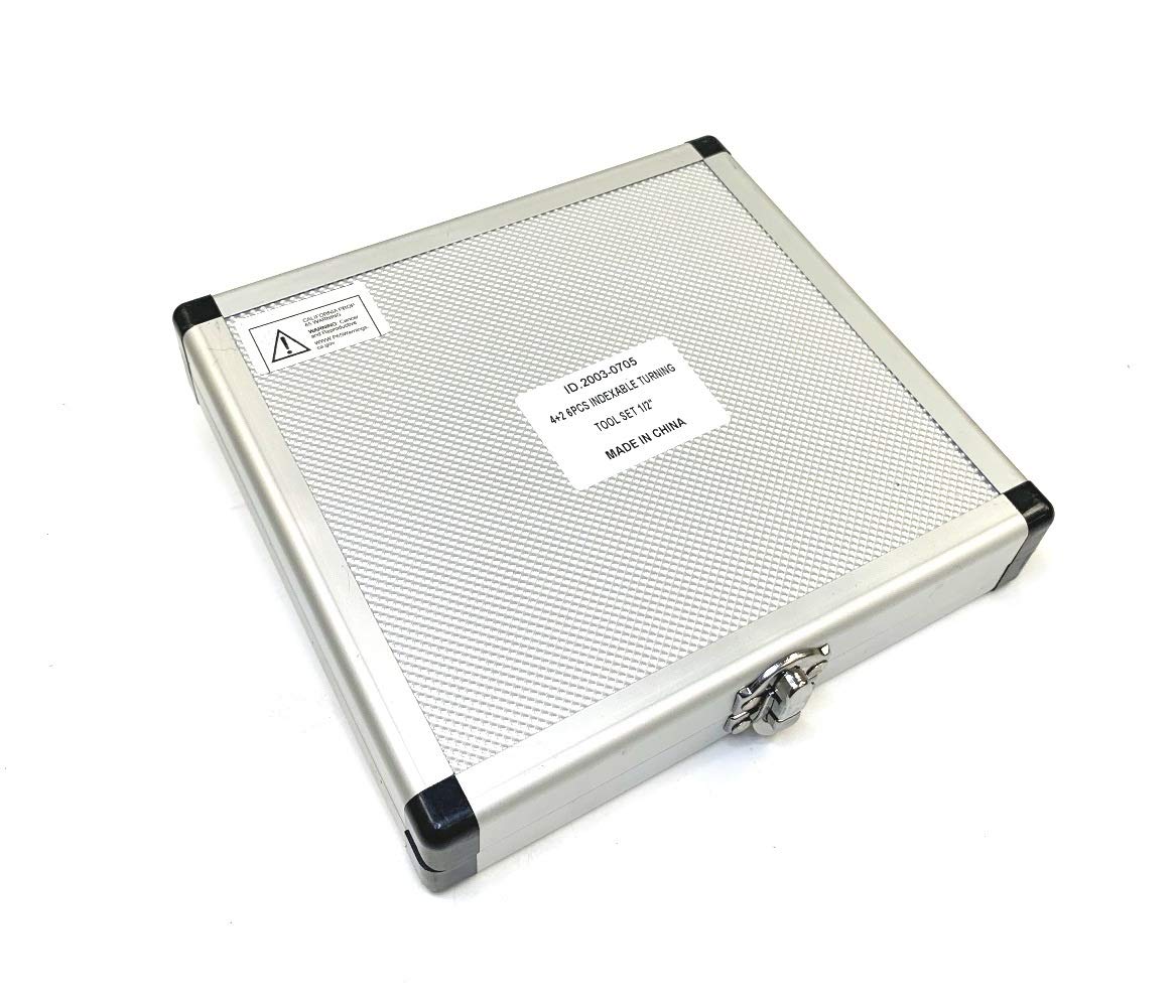HHIP 6 Piece 1/2" mini turning & boring tool holder Set Made of 40Cr steel. Supplied in a fitted aluminum case. This set includes 3 Turning Holders (SVJCR,SVJCL,SSDCN), 2 Boring Holders (SCLCR & S06H-SCLCR), 1 Adapter that holds S06H-SCLCR2 and a T8 Torx Wrench.