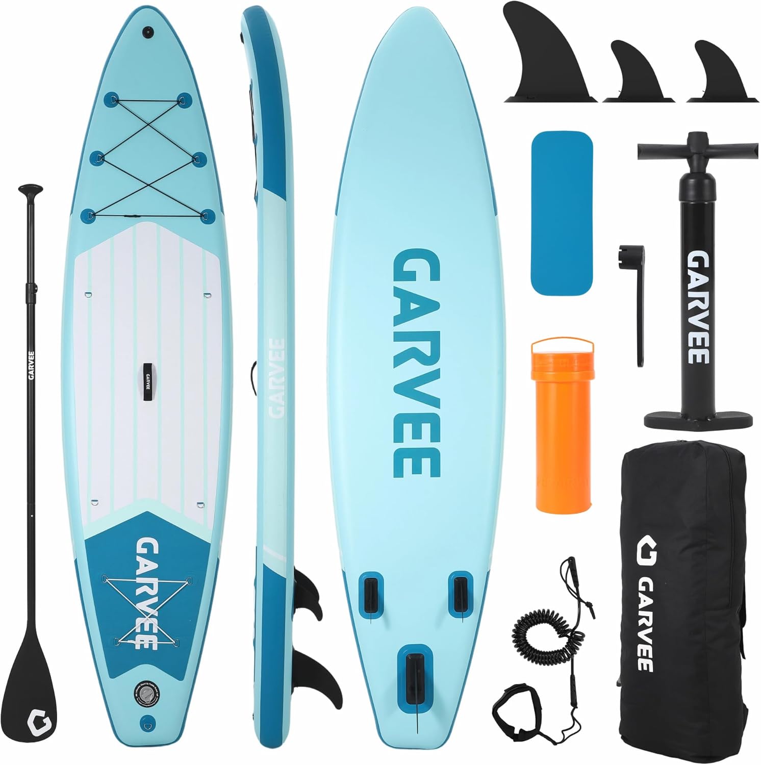 | Included Components | 1 x Backpack,1 x Inflatable paddle board,1 x Paddles (3 pieces),1 x Leash,1 x waterproof mobile phone pouch,3 x Fin,1 x User Manual,1 x Repair set ,1 x Hand Pump |