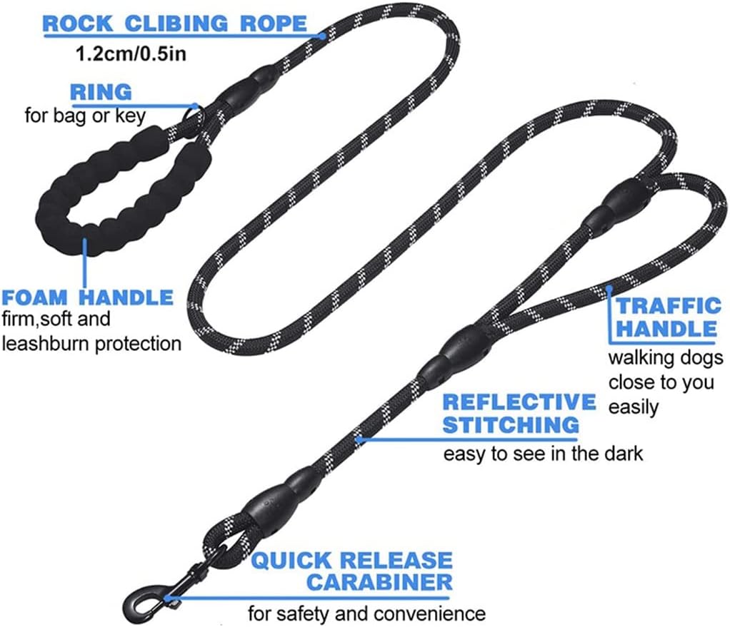 The stretch design helps absorb the shock of fast movements when used with energetic and active dogs, reducing the feeling of being pulled.Extendable from 44cm to 80cm (17 to 31.5 ) in length, the bungee has a strong pull that gives your dog plenty of room to run in front of or beside you.Reflective stitching, featuring illuminated reflective stitching across both belt lengths, provides extra security at night. Our stylish reflective seams are a must-have to help you stand out in the dark and are vital to your and your dog's safety.Comfortable padded handle, the soft padded handle no longer burns your hands. The soft neoprene padded handle provides ultimate comfort and leaves you hand free when walking 2 dogs, it can withstand (0-45kg) 0-100lbs of pull.2 in 1 multifunctional, by loading and unloading the tail bungee cord, you can lead a dog or two dogsType: Pet LeashMaterial: Nylon, LeatherSize: 1.5M,1.8Mpacking list:Pet leash*1 (excluding other products)notes:Due to different lighting and screen , the color of the item may be slightly different from the picture.The slip lead design with safe stopper makes it effortless to put on and take off your dog, saving you time. It's particularly handy for training scenarios that require quick transitions