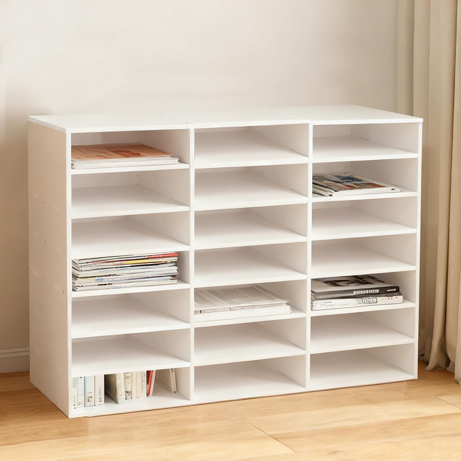 Features: Unique designs: This 21-compartment file organizer, making it easy to organize books, documents, letters, and office supplies. Its simple white design makes it suitable for classrooms, offices, or home use, serving as both a practical desktop file organizer and a neat letter storage box to keep your workspace tidy. Specifications: Material: PVC-wood composite board Color: white Size: 27.8 x 21 x 9.25 inches/70.6×53.5×23.5 cm Package Contents: 1 x 21 Compartments Classroom Mailbox Notes: Manual measurement, please allow slight errors on size. The color may exist a slight difference due to different screen displays.