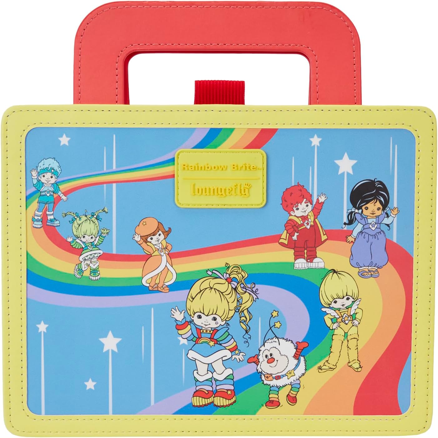 The power of the rainbow is yours! Bring color and happiness wherever you go with the Loungefly Rainbow Brite™ Rainbow Journey Lunchbox Journal. Inspired by a classic lunchbox silhouette, this notebook frames each cover with bright red handles. On the front, Rainbow Brite rides Starlite to Color Castle. Turn the journal around to see Rainbow Brite and Twink travel on a rainbow with the Color Kids. Inside, Puppy Lite, Starlite, Rainbow Brite, and Twink frame the lined notebook pages and make an encore appearance in the book’s centerfold. You’ll even find a space to write your name on the inside front cover, along with themed sticky notes in the shape of a vintage thermos! This journal has plenty of space to store your bright ideas and will inspire creativity on all your adventures.