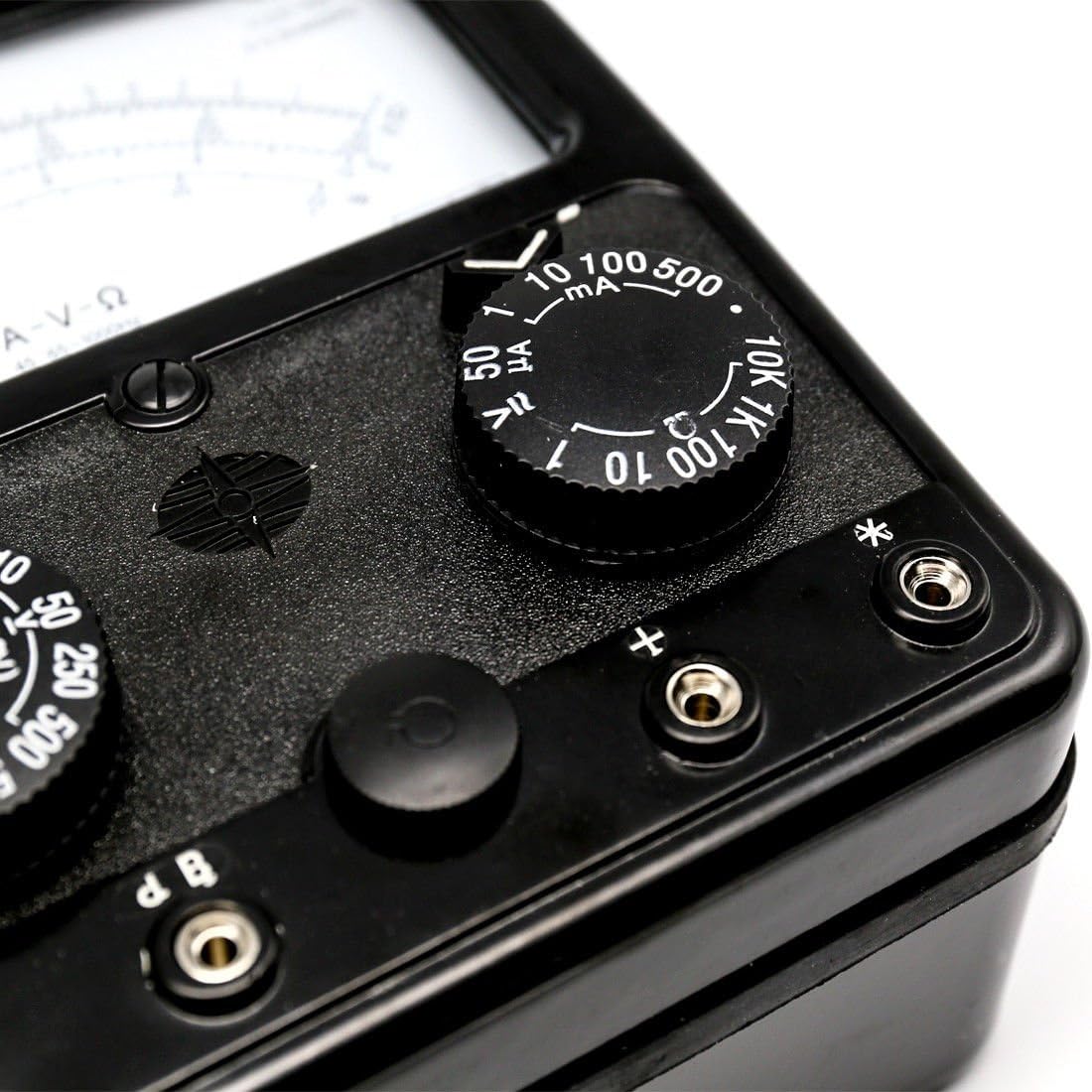 SPECIFICATIONS: DC Voltage: 2.5 / 10/50/250/500 V / 2500 V AC Voltage: 10/50/250/2500 V Current DC: 0.5mA / 1mA / 10mA / 100mA / 500mA Resistance: R2K / R20K / R200K / 2MΩ / 20MΩ Color:black Dimensions: 178 * 138 * 84mm Weight: about1450g Power supply: 1.5V C battery × 1 + 9V 6F22 battery * 1 & # 65288; without battery & # 65289; Accessories: test leads, Manual CHARACTERISTICS: 1. MF500B type multimeter is a high sensitivity, portable, rectifier-based instruments. 2. The instrument has twenty four ranges, respectively, can measure AC and DC voltage, DC current, resistance, and audio level. 3. basic function: DCV ACV DCA Ω etc. 4. mirror feature scale for accurate reading 5.Classic design 6.magnetic internal board head 7.bakelite shell 8.overload protection.