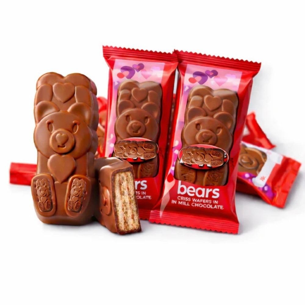 Stock up on milk chocolate wafer bear shaped candy with this 5 lb bulk bag. With about 150 individually wrapped pieces, it is ideal for parties, candy buffets and office treat stations.