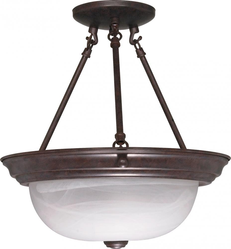 Nuvo Lighting 60/210 Traditional Three Light Semi Flush Mount in Bronze/Dark finish, Height: 15. 50 inches Width: 15. 25 inches Style: Traditional Light Type: Close-to-Ceiling Safety Rating: UL and Safety Listing: Dry Number of Lights: 3, Bulb Type: A19, Bulb(s) Included: No