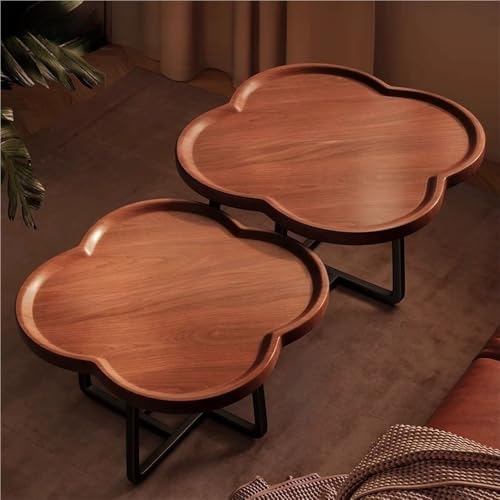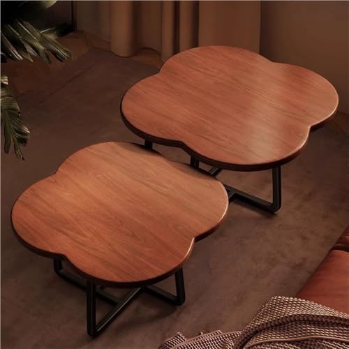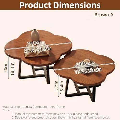 Elevate your living space with our modern floral coffee table set, expertly crafted to blend beauty with functionality. This exquisite set features a unique floral top paired with a durable black ometric steel base, making it a stunning addition to any room. The smooth, rounded edges ensure safety for all family members, while its versatile nesting design is ideal for small spaces. Whether you’re hosting friends or enjoying a quiet evening at home, these tables offer the perfect solution for your coffee, snacks, or decorative items. The set includes two tables with different top styles, allowing you to mix and match or use them separately, ensuring a stylish and organized environment. Product Details: - Name: Coffee Table Set of 2 - Material: High-density fiberboard with walnut finish for the top; sturdy black ometric steel for the base - Dimensions: Small table (19.7'' x 15.4'', 27.6'' height) and Large table (23.6'' x 15.4'', 31.5'' height) - Features: Smoothly rounded edges, beautiful flower-shaped top, space-saving nesting design - Assembly: Required Ideal for your living room, bedroom, studio apartment, home office, or dorm, this coffee table set combines style with practicality. Packing List: Coffee Table Set of 2 Tips: 1. Please allow slight measurement errors. 2. Color may vary slightly due to different screen displays. 3. Our customer support team is here to assist you within 24 hours, ensuring you feel confident with your purchase. Transform your space with this elegant coffee table set that embodies modern design without compromising on everyday use.