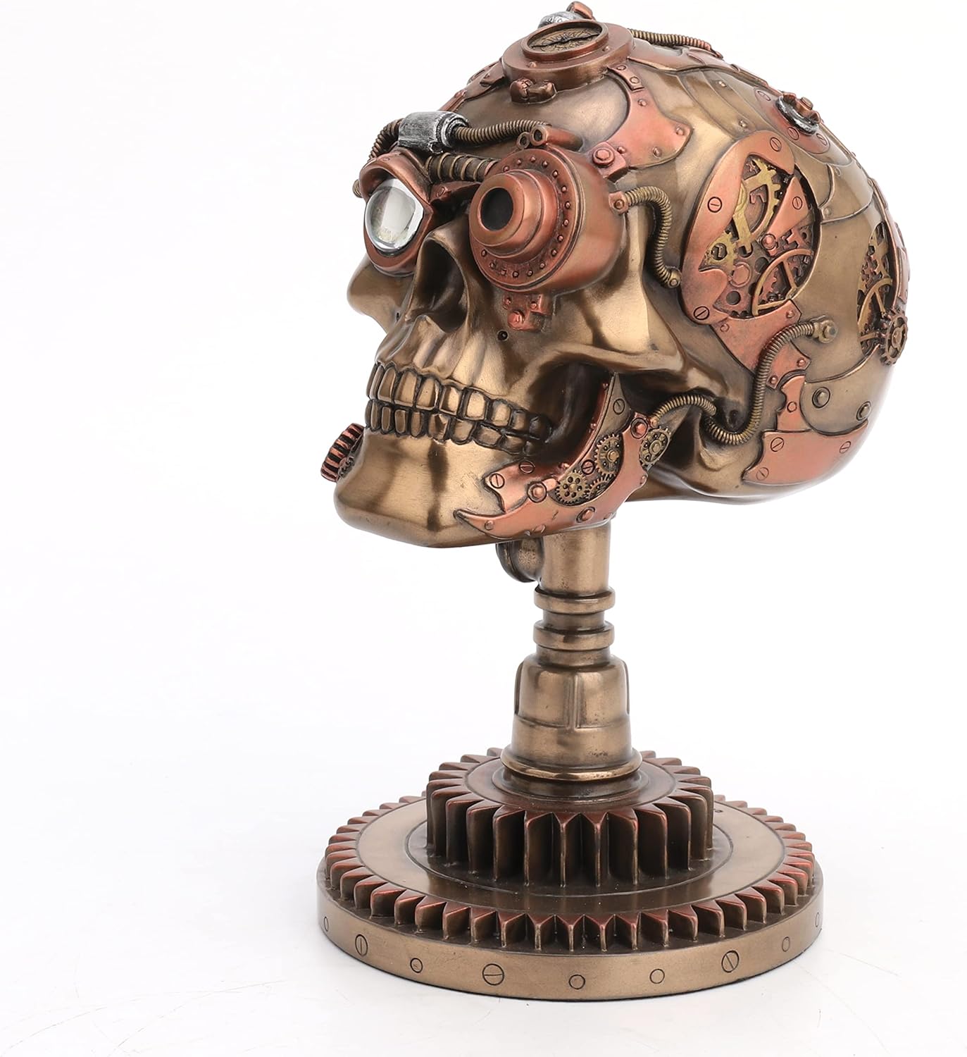 Featuring a Steampunk Skull on a gear stand cast in Cold Cast Bronzed Resin.