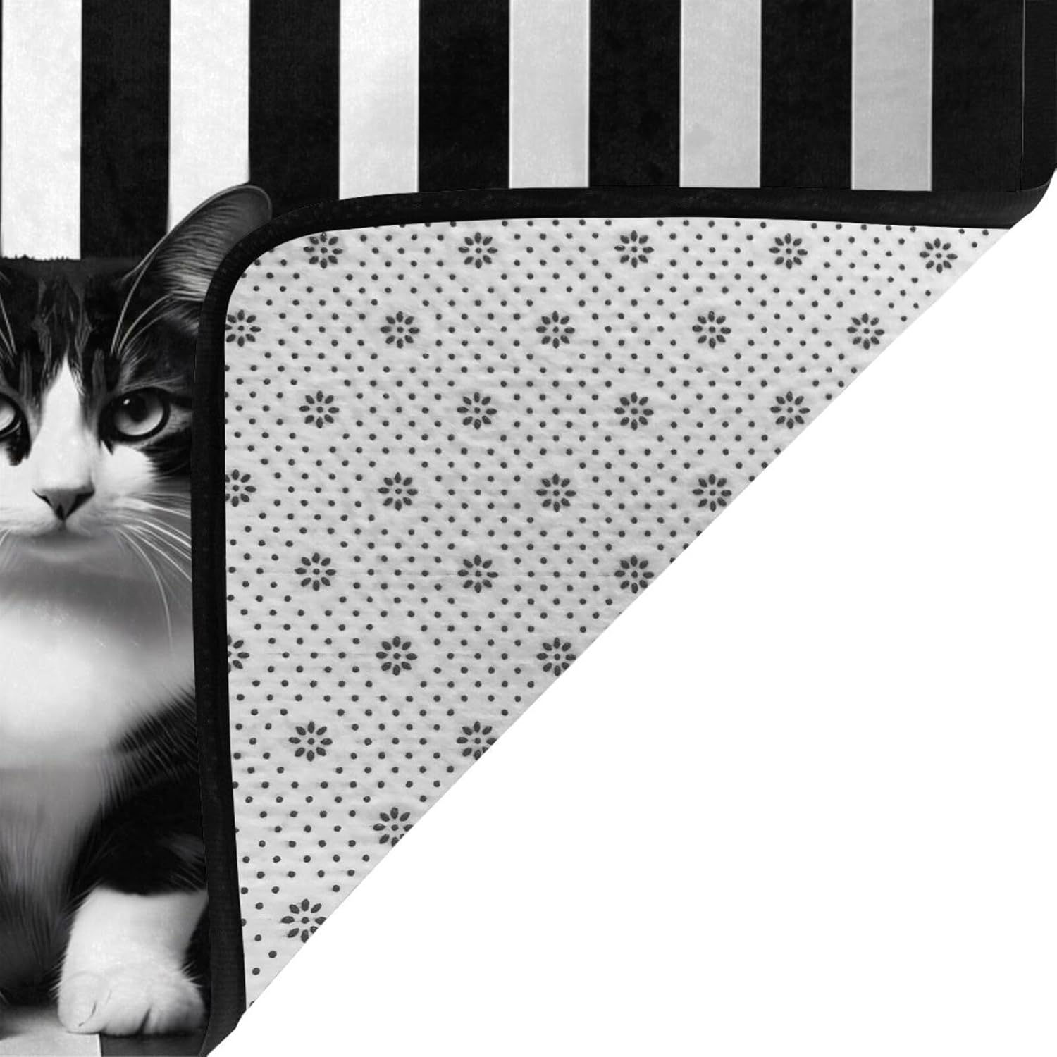 Choose our Striped cat printed decorative carpet to bring meticulous care to your family. Made of high-specification polyester flannel, the pile is fine and dense, not easy to pilling and fading, and it will accompany you longer. The memory foam middle layer is like a caring friend, dynamically adjusting the foot pressure, relieving fatigue, and making your every step full of comfort. The non-slip bottom design is like a loyal guardian, silently protecting the safety of you and your family, especially suitable for families with elderly and children. Easy to clean, can be washed by water or machine, saving time and effort. Exquisite cutting and sewing technology ensures that the edge of the carpet is flat and burr-free, and the truth is in the details. Whether it is a bathroom, bedroom or office, it can add a touch of warmth and peace of mind to your life.