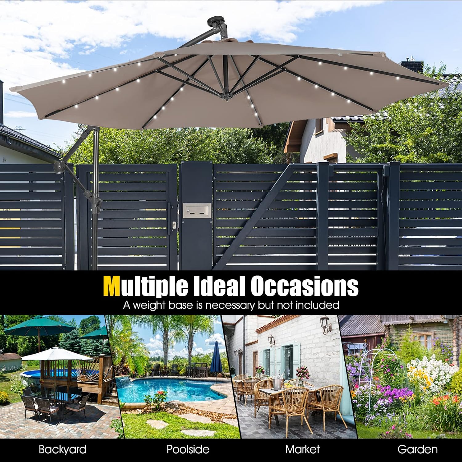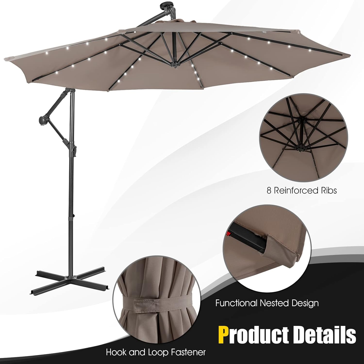| Model Name | 10 ft Cantilever Umbrella w/32 Solar-Powered LED Lights, Functional Tilting System & Hand-Crank Mechanism, Colorfast Solution Dyed Canopy, Patio Offset Umbrella for Backyard, Poolside, Market |