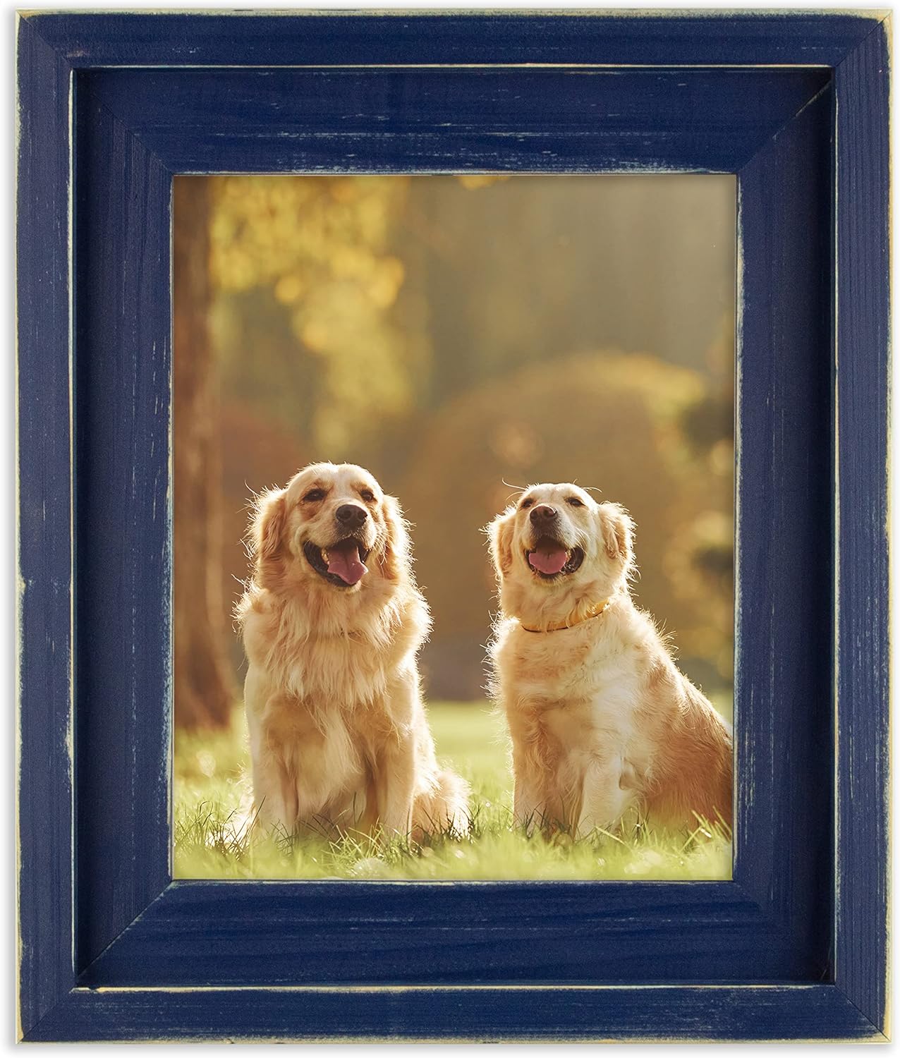 Featured is the Distressed Farmhouse Deep Blue Picture Frame, which is a hand made wooden picture frame hand-painted and hand-distressed, made right here in the USA!. Frame Moulding Width: Approx 2.125 inches. Frames up to 20x24 include glass, backing, and hangers. Frames larger than 20x24 include acrylic rather than glass, for safety. These frames are available in a wide variety of colors and sizes, and this frame is perfect for weddings and traditional decor. We can make almost any size that you need, including the most common sizes, such as 4x6, 5x7, 8x10, 12x12, 11x14, and 16x20. Contact us with any questions or requests for a special size that we do not have listed. You can choose the size you need, or change the color in the dropdown menu above. Frame size is determined by the size artwork the frame will hold. For example, if your artwork is 8x10, choose an 8x10 frame. Our frames are sized by the inner dimension, not the outside measurement. The visible area of the artwork will be 1/2 inch smaller than the size of the frame. For example, the visible area of an 8x10 frame is 7.5x9.5, due to the lip of the frame that holds in the glass and artwork. Please note: various screens display colors differently, and actual color may vary slightly from what is pictured. Please contact us with any questions, we look forward to doing business with you!