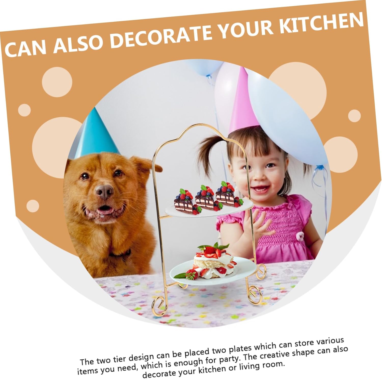 Package List 1 x Dessert Display Rack Features - Size(8inch): About31.50X23.00X23.00cm/12.38X9.04X9.04inch Dessert Display Rack - Material: Iron Fruit Rack - Color: Golden Fruit Displaying Stand - Also can be a present choice for your friends who are hold a party, they will like it Iron Art Rack. - It is a wonderful storage organizer and a display holder for party, store etc Exquisite Fruit Stand. - Great for parties, weddings, showers, birthdays, restaurants, bakeries and window display! Iron Art Holder - design, it matches with the many kinds of party styles. It will give you a experience Snack Tray Rack. - Lightweight, convenient to use. A accessory for kinds of party. A very versatile tool for daily use Cake Tray Rack.Goods InformationCake Tray Display Rack Try this cake display stand! Place your cake or dessert on this shelf, and your guests will praise this delicate masterpiece in your celebrations as they help themselves to delicious cake! For wedding, birthday, etc.Household Fruit Tray Rack European style design looks elegant and exquisite, and is and stable enough to hold the cake