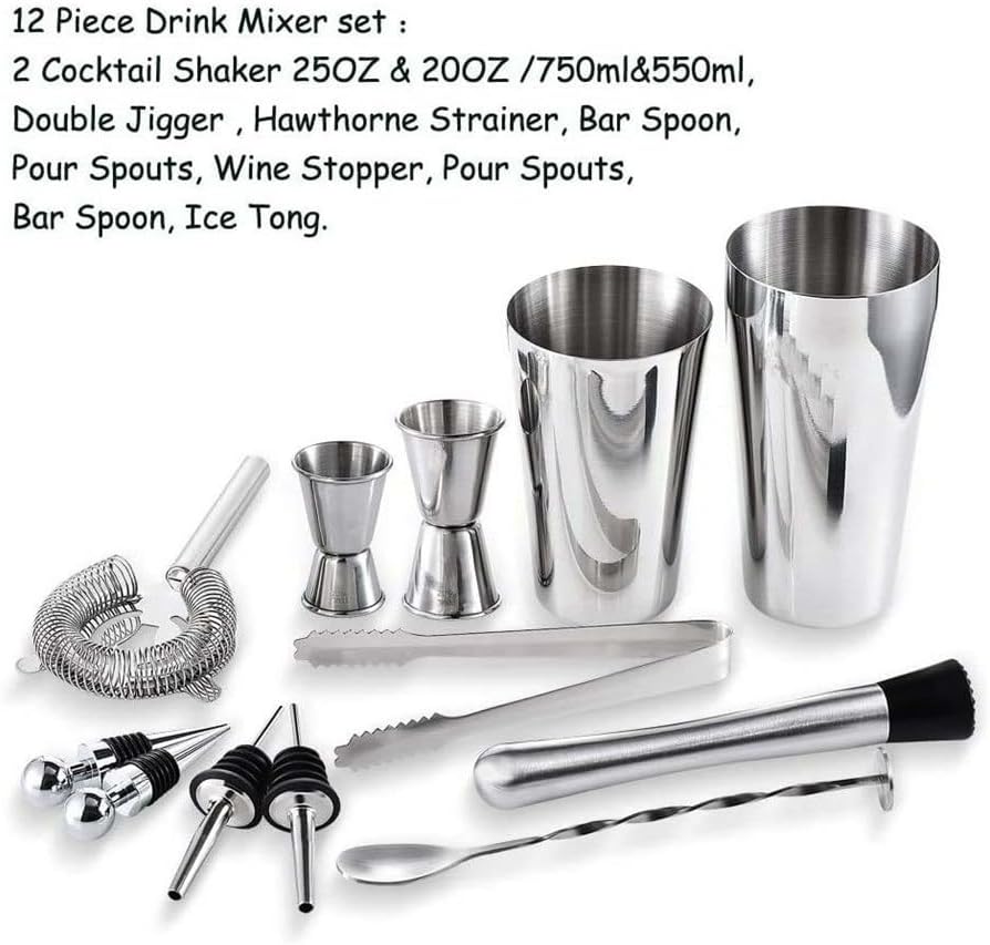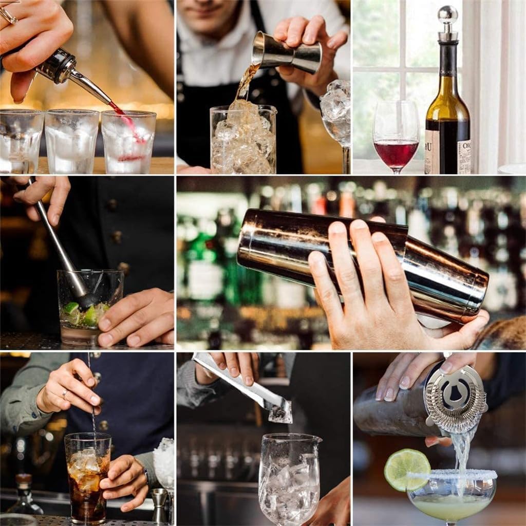 Strong and .Easy to store.Entertaining your guests at home or at a party is a great option.This is a great gift for cocktail lovers at weddings, birthdays, Thanksgiving, Christmas, or business events.This bartending tool can be recommended to beginners, experienced bartenders, your family, your friends, etc.Specifications: Material: Stainless steelOccasion: Gift bar, bar, family party, etcPackage Included:1 x Bartender kitNotes: 1. Only sell main products, not other products.2. Due to screen differences, the color may be slightly different from your expected color, please allow.Remind:After receiving the packaging, please check the packaging and the product carefully. If the received item is defective or has any questions, please us via email to resolve the problem. We will reply as soon as possible and do our best to meet your needs.Highly practical with all-in-one bartending tools, it suits both beginners and seasoned mixologists, is easy to use and clean, for daily use, and also serves as gift for cocktail lovers, any home bar setup and drink-making experience