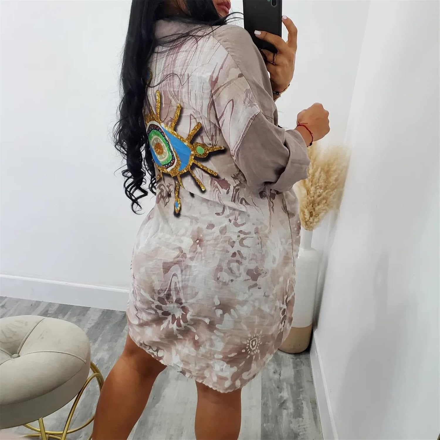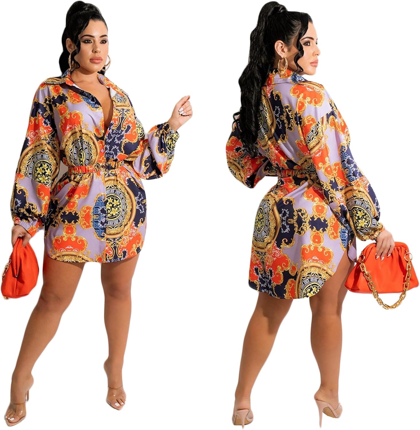Women's Floral Button Down Shirt Dresses Casual Oversized Long Sleeve Button up Blouses Tops Mini Dress with Belt Size Chart S Bust: 40.9"; Waist: 39.4"; Hips: 41.7"; Shoulder: 20.5"; Length: 33.5"; M Bust: 42.9"; Waist: 41.3"; Hips: 43.7"; Shoulder: 20.9"; Length: 33.9"; L Bust: 44.9"; Waist: 43.3"; Hips: 45.7"; Shoulder: 21.3"; Length: 34.3"; XL Bust: 46.9"; Waist: 45.3"; Hips: 47.6"; Shoulder: 21.7"; Length: 34.6"; XXL Bust: 48.8"; Waist: 47.2"; Hips: 49.6"; Shoulder: 22"; Length: 35";