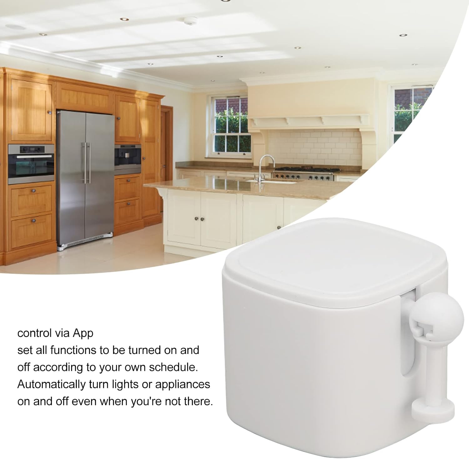 1. Strong Compatibility: Wireless smart switch push rod is versatile, perfectly suitable for various kinds of rocker switch and of any device, better meeting your different needs. 2. Wide Applications: Whether it is an old garage door, light switch, fan, doorbell or coffee maker, the device can intelligently control your old appliances with the push of buttons and switches. 3. Wireless Control: You can control via App . You can also set all functions to be turned on and off according to your own schedule. Automatically turn lights or appliances on and off even when you're not there. 4. Smart Life: You can control your smart pusher with the for Assistant and create home automation where your smart home system automatically triggers your switch pusher. 5. Long Service Life: The APP control switch pusher comes with built in 500mAh lithium ion battery, low power consumption and long standby time. ABS plastic material is wear and durable. Spec: Item Type: Smart Switch Pusher Material: ABS Wireless Connection: BLE 4.2 Application: Compatible with a variety of switches, such as lights, light switches, fans, TVs, doorbells, garage doors, etc. Battery Type: Built in 500mAh lithium ion battery How to Use: 1. Scan the QR code on the box to download and install the APP. 2. Fix the smart switch on the switch panel and use the app to operate the control. Package List: 1 x Smart Switch Pusher 2 x Replacement Bracket 6 x Sticker 1 x Chinese and English Manual