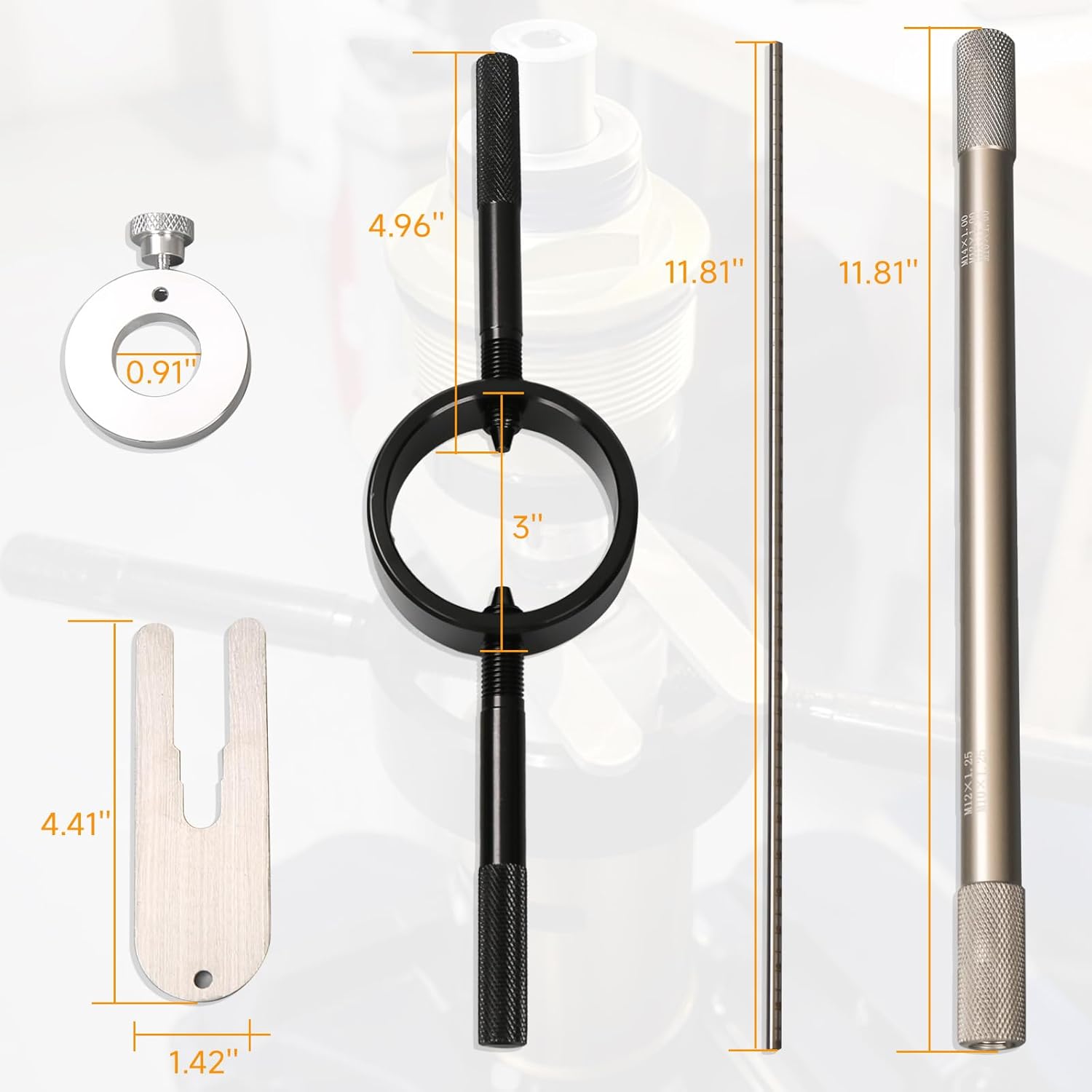 Proven 3-in-1 Fork Service Kit-Master your fork maintenance effortlessly with our core trio: the precise Fork Oil Level Tool, secure Fork Spring Compressor (includes Holding Tool), and versatile Damper Rod Bleed Tool. This essential kit delivers everything needed for professional-level fork servicing at homePrecision Oil Level Control-Achieve perfect oil fill every time with the Fork Oil Level Tool. Featuring an adjustable 0-300mm scale in 0.5cm increments, its 60ml syringe system ensures accurate oil measurement, eliminating guesswork for optimal fork performance.Say goodbye to messy measurementsSafe Spring Compression and Non-Marring Access-Compress springs safely and access fork caps/nuts without damaging shafts. The included Cartridge Rod Holding Tool (designed with protective ABS plastic) securely holds springs back, making disassembly and reassembly smooth and scratch-freeEffortless Air Bleeding & Wide Compatibility-Simplify the critical air bleeding process before assembly. The Damper Rod Bleed Tool combines FIVE key thread sizes (M10x1.0, M10x1.25, M12x1.0, M12x1.25, M14x1.0) in one tool, ensuring compatibility with most conventional cartridge and inverted forksSave Significant Time and Money DIY-Stop paying expensive mechanic fees! This cost-effective kit empowers riders to change fork oil and perform essential maintenance tasks themselves. Save valuable time and money by achieving professional results easily, right in your own garage – no technician experience needed